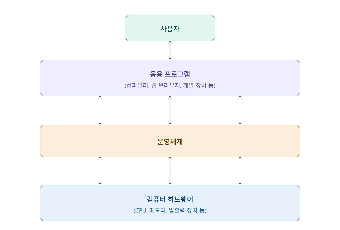 운영체제는 사용자와 컴퓨터 하드웨어 사이에서 중개 역할을 하며, CPU, 메모리, 저장장치 같은 자원을 관리하는 시스템 소프트웨어이다. 우리가 메모장 같은 프로그램을 쉽게 실행하고 사용하는 것도 운영체제 덕분이다. 만약 운영체제가 없다면 프로그램 실행, 입력 처리, 화면 출력 등을 모두 직접 처리해야 하므로 사용이 매우 복잡해진다.